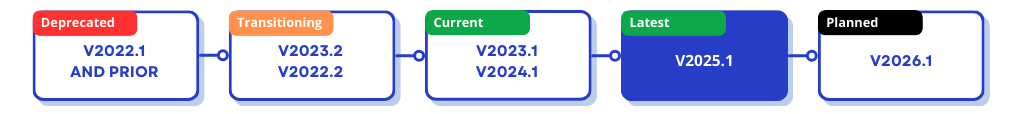The latest version of the framework is v2025.1 and versions 2024.1 and V2023.1 remain current.
